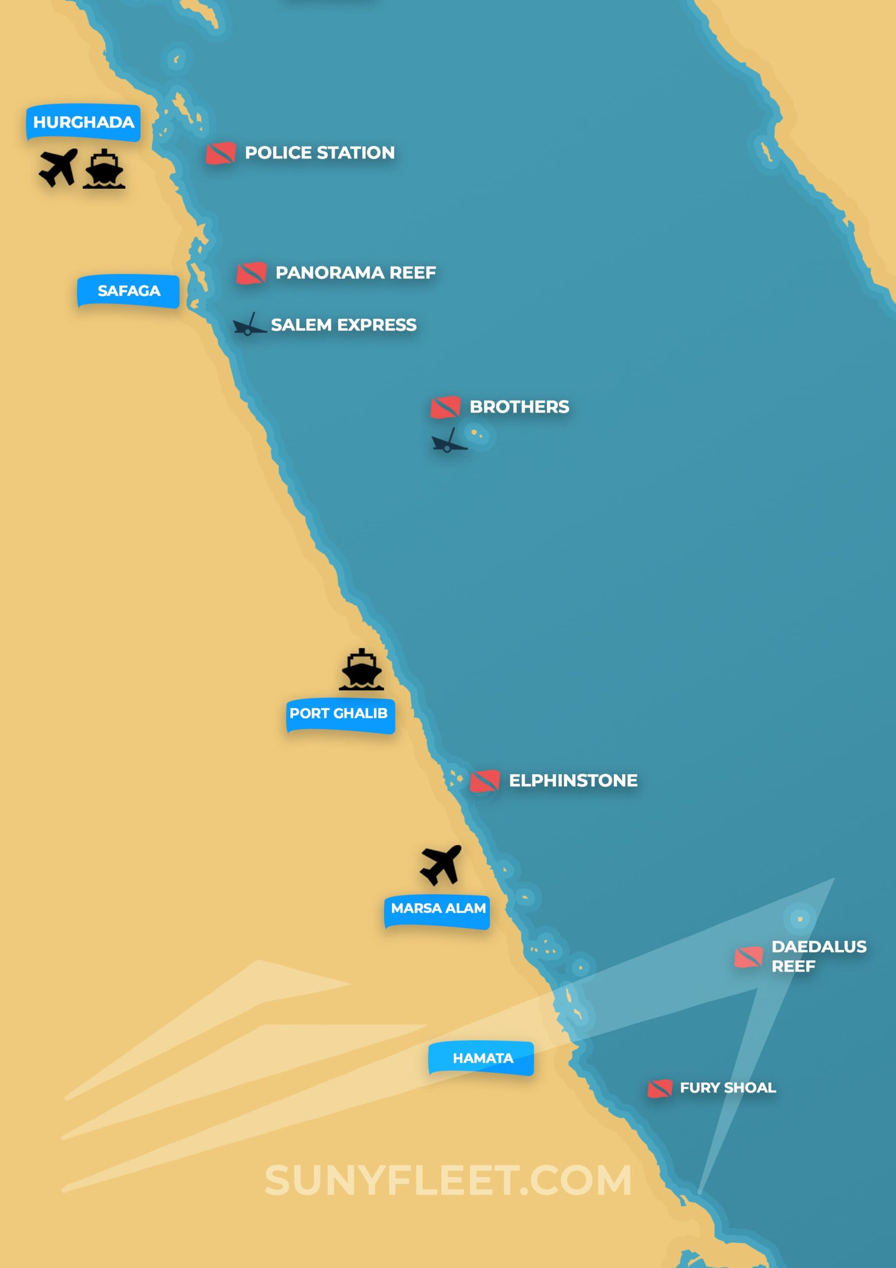Visita con nosotros algunos de los mejores puntos de buceo en el norte del Mar Rojo junto con las islas Brother en el sur.